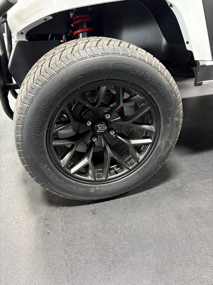 - 14″ WHEELS ( BLACK OR METALLIC SILVER) WITH 225/50R/14 STEEL BELT TIRES