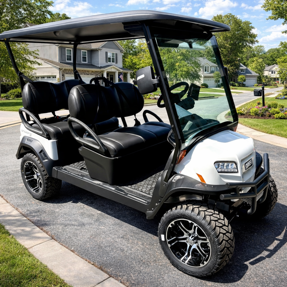 CLUB CAR STANDARD PACKAGE TO INC: SILVER OR WHITE BODIES & BLACK PREMIUM SEATS